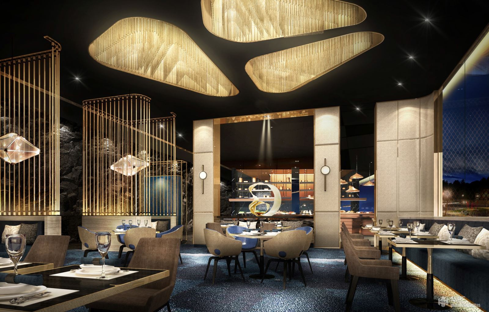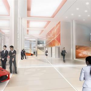 迎賓中心緊鄰比賽大看臺,并且和凱世精品酒店通過以通透的玻璃連廊在四層連接,位于整個賽車場的核心區(qū)域,是整個賽車場的動力中心和后勤保障大樓。此大樓承載著賽事期間的高端接待運營,也為凱世精品酒店的平時運營提供餐飲、休閑等服務(wù)。