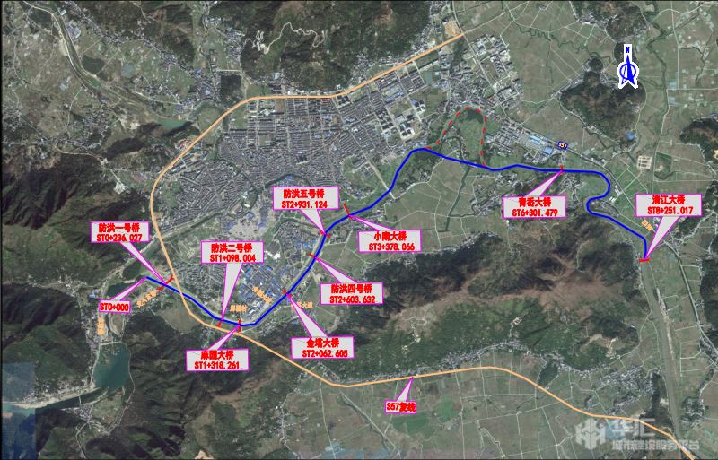 本項目的橋梁建設為鰲江干流治理平陽縣水頭段防洪工程的一部分,項目建設規(guī)模為防洪標準20年一遇,主河道總長約8.361km,河寬120m。從上游到下游橋梁分別為防洪一號橋、防洪二號橋、麻園大橋、金塔大橋(防洪三號橋)、防洪四號橋、防洪五號橋、小南大橋、小南三橋(本次暫不建設)、青岙大橋和清江大橋等10座,各橋的橋頭接線主要為農村公路,現(xiàn)狀公路等級為四級公路。
